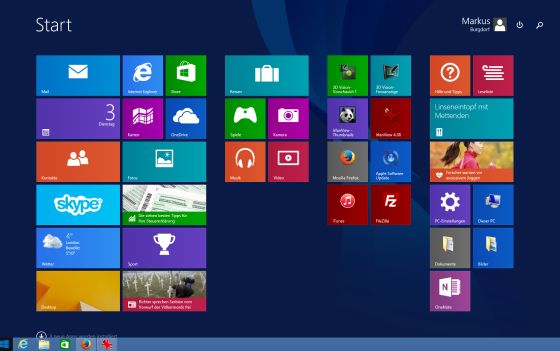 Mit meinem Laptop, der daneben steht und ein zu Vista vergleichsweise frisches Windows 7 beheimatet, konnte ich dann herausfinden, was sich da bei Windows 8 alles geändert hat. Und dass man ja – Microsoft sei Dank – auch kostenlos auf 8.1 updaten kann. Nachdem ich ein paar meiner gerne verwendeten Programme Apps geladen hatte und sogar die Grafikkarte von NVIDIA wieder volle Unterstützung vom System bekam, habe ich dann auch noch gleich auf 8.1 geupdated. Und siehe da, unten links ist nun wieder ein Windows-Symbol, mit dem man dann die Kacheln auf den Bildschirm holt und der Anwender ist zufrieden.